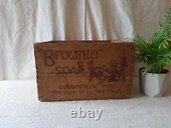 RARE BROWNIE SOAP ANTIQUE BOX ADVERT CRATE INK LABEL VINTAGE HANDLES Wooden Prop. Superb and rare find, in good solid order. Some general signs of wear to the wood in places. Measures 45.5cm wide x 34cm deep x 28cm high. Please see my other items as I have lots of vintage wares available.
